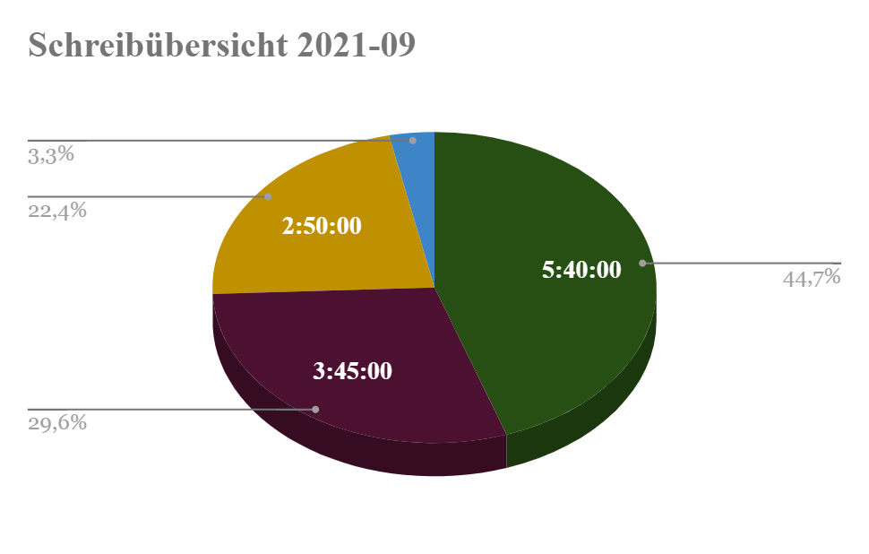 ach einer Schreibpause im Sommer wollte ich im Urlaub wieder frisch ans Werk gehen. Das funktionierte nur teilweise. Zwar hatte ich die Motivation, zwei neue Projekte anzufangen, aber ich wollte auch die Überarbeitung nicht einfach liegen lassen. Zudem fiel es mir leichter, einen Text zu überarbeiten als einen neuen zu schreiben. Daher war es keine Option, die Überarbeitung auf Eis zu legen und mich zum Schreiben der neuen Ideen zu zwingen.