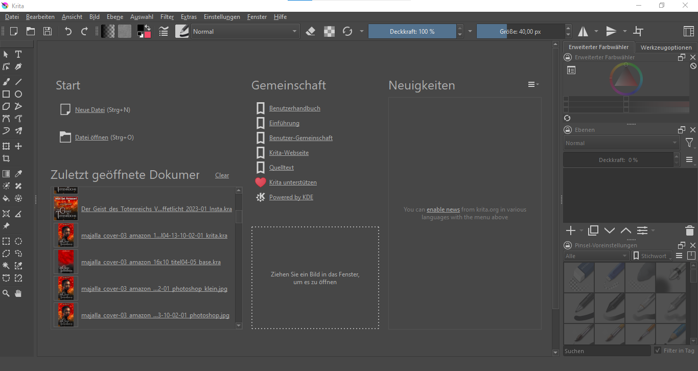 Für jemanden mit Photoshop-Erfahrung kann ich in jedem Fall Krita empfehlen. Besonders, wenn ein Abo von Photoshop wie bei mir keinen Sinn ergibt. Ich arbeite privat nicht regelmäßig genug an Grafiken, für mich wäre es also rausgeschmissenes Geld. Zudem ist Photoshop leider für Privatmenschen ohne irgendwelche Möglichkeiten für Vergünstigungen ziemlich teuer.